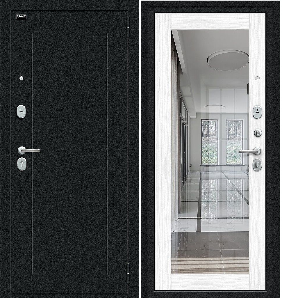 Дверь Входная "Флэш" Snow Melinga R/Букле черное