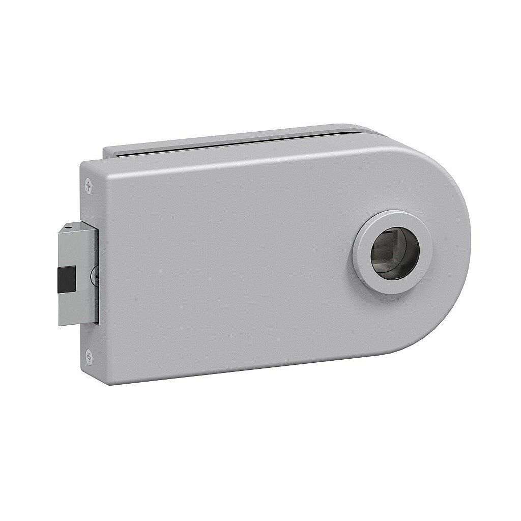 Защелка без индикатора закрытия для стеклянной двери с ответной планкой. Язычок защелки имеет пластиковую вставку для снижения уровня шума при закрывании и увеличения срока службы.